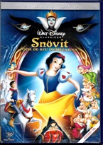 Min bojkott av allt från dagens korporativa, själlösa och lika kreativt som moraliskt bankrutta Disney, som inte alls representerar vad Walt Disney själv stod för förresten, gäller ju såklart inte allt som företaget gav ut innan jag började bojkotta skiten, från decennieskiftet, och som vi även äger sedan tidigare. Just Snövit på DVD här har vi haft åtminstone sedan dottern varit gammal nog att sitta upp själv och se på film. Det här är den andra DVD-utgåvan, från 2009, och det stämmer bra med åldern på tösen vår, det var nämligen också omkring då dottern var gammal nog att börja titta på film.
