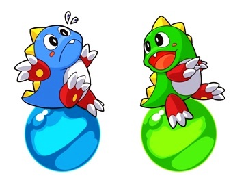 Dinoduo som blåser bubblor för att fånga fiender i dem när de inte skjuter iväg bubblor för att bilda kedjor och pussla sig fram. Eller ja, dinosaurier eller bubbeldrakar kanske. Egentligen så är de dock inte alls dinos, eller drakar, visste ni det, utan helt vanliga mänskliga pojkar som blivit förtrollade eller något. Och deras mänskliga riktiga former är vad man spelar som i uppföljarna till Bubble Bobble som inte är Bubble Bobble utan Rainbow Island och Parasol Stars. Japp, så det så. Fast det är ju såklart först och främst i deras söta små dinosaurie/drakformer som de flesta är mest bekanta med denna dynamiska duo.