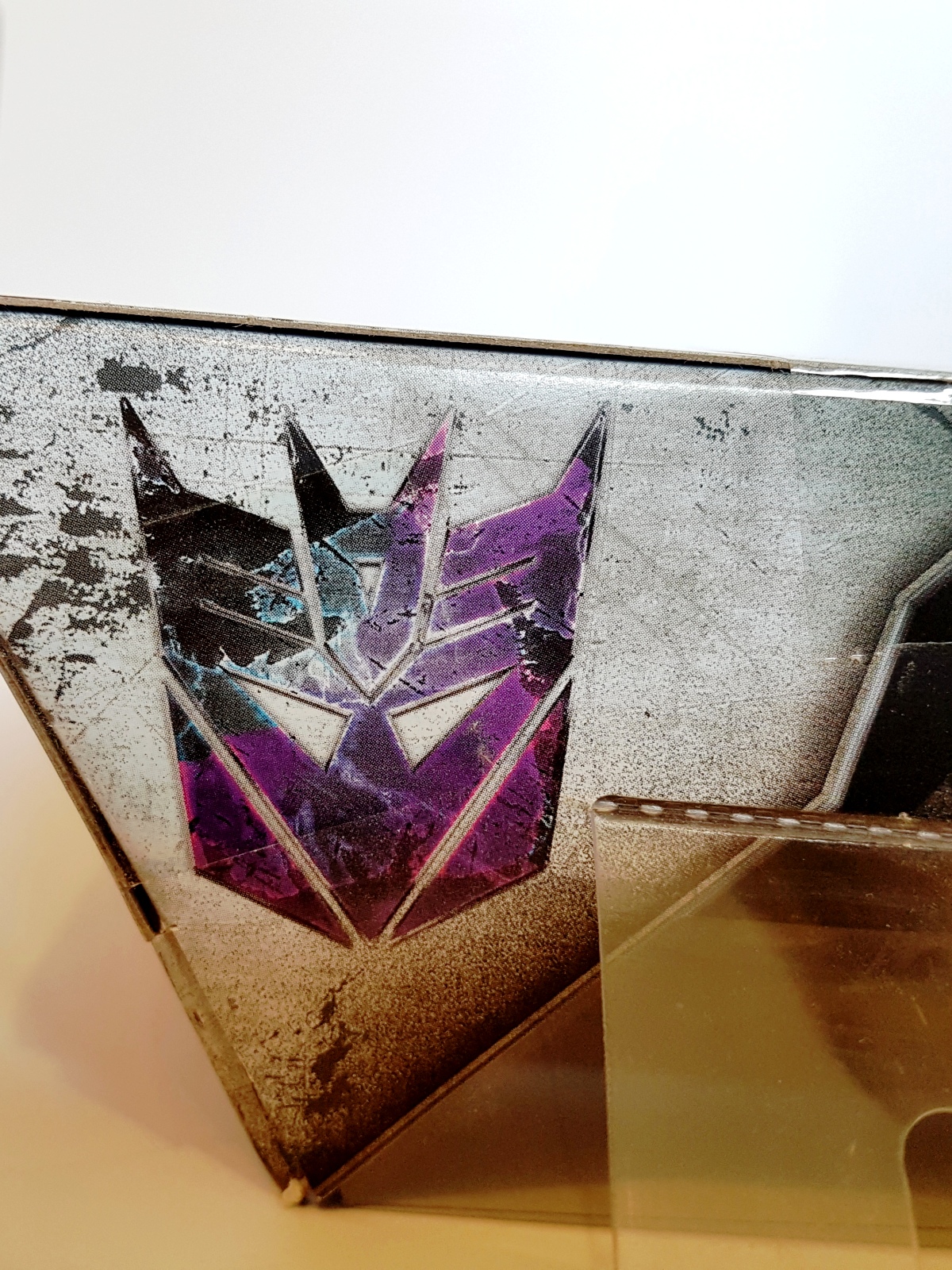 Illustrationerna på förpackningen diggar jag. Mycket häftigt. Lite stör jag ju mig på att det är ett Autobot-emblem till Generations-loggan där på framsidan men de hade i alla fall vett nog att ha med Decepticon-märket under karaktärens namn samt på ovansidan av lådan.