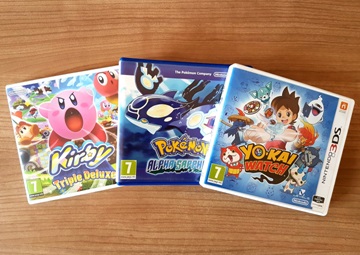 För att sammanfatta. Kirby från Kirby Triple Deluxe, Torchic från Pokémon Alpha Sapphire och Jibanyan från Yo-Kai Watch. Tre mycket söta nallar från tre mycket häftiga spel.