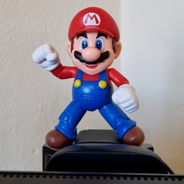 Men vadan detta egentligen? Varför en sådan här Mario och varför nu? Jo, det var faktiskt något av ett impulsköp. Såg denna i en leksaksaffär tillsammans med Luigi och några andra karaktärer och kände köpsuget men avstod. Sedan ångrade jag mig och gick tillbaka till affären där en Mario fortfarande hängde kvar, och det var den sista Super Mario-figuren av just Mario som de hade vid det laget, och köpte den. Lät mig väl svepas med av hypen kring den nya Super Mario Bros-filmen och kände att jag ville ha en Mario-figur som pryder mitt skrivbord. Jag har dock ingen aning om dessa figurer har direkt med den nya filmen att göra, dvs om det ska vara figurer tagna rakt ur just filmen eller bara figurer ur Super Mario i största allmänhet. Har årtalet 2022 i alla fall.