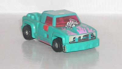 Sedan har vi förstås det här med vapnet/motorn om man kan gå så långt att kalla det för en finess. Som ovan nämnt var det ingen förvandlingsprocess inblandad. Den silverfärgade pistolen placerades helt sonika med ovansidan, skulpterad som en motor, uppåt framme på huven av bilformen (samt därbak på Rapido...). Det såg i vilket fall bra ut och var ett fyndigt sätt att låta tillbehören stanna kvar på figurerna även i deras alternativa former.