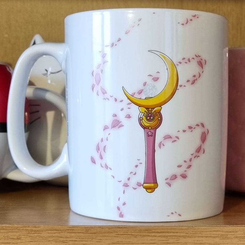 När jag en dag såg den här koppen i en butik visste jag att jag måste ha den. Jag måste ha den genast. Det blev ett köp direkt. Jag gillar Sailor Moon. En riktig klassiker till animé. Detta är en trevlig kopp. Helt vanligt utformad, inte som någon av mina tidigare tre kattkoppar där även den första hade lite annorlunda form, men med en mycket fin bild på Sailor Moon. Och jag gillar att den har en helt annan bild på baksidan av koppen. Den här koppen använder jag ofta.