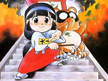 Det är Pocky och Rocky från gamla Natsumes Pocky & Rocky och senare med Becky också men främst kända som en dynamisk duo, ej en trio, från just nämnda Pocky & Rocky, utan Becky då, samt den direkta uppföljaren till SNES från början till mitten på 90-talet. Dessa var i sin tur redan uppföljare till Kiki KaiKai, från runt mitten på 80-talet i arkadhallarna, där man spelade med blott tösen, en miko eller sk tempeljungru, utan tvättbjörn. Det första spelet är numera lätt tillgängligt via t ex samlingskassett till Evercade eller Arcade Archives till Nintendo Switch och det är svårt som utav bara helvete!! Då är SNES-spelen som dessutom kan avnjutas i väldigt trivsam couch co-up mycket trevligare upplevelser. Pocky är tjejen och Rocky är tvättbjörnen alltså och Becky är en till tös som sedan var med i den fjärde delen i serien som gjordes till Game Boy Advance av alla format men fuck henne för nu handlar det faktiskt om Pocky och Rocky!! Spelen är typ shooters à la Zelda typ förresten. Väldigt skoj spelupplägg, speciellt för två.