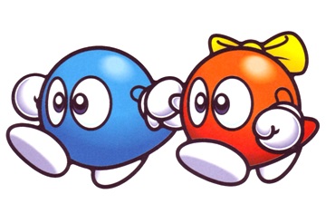 Vi ser Bub i huvudrollen för spelare 1 och hans twillingsbror Bob som backup. Och när de är människopojkar heter de Bubby och Bobby.