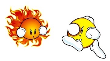 En väldigt kul grej är annars hur de ändrar från dag till natt och tvärtom igen i Kirby's Dream Course samt hur det påverkar det pågående spelet i tvåspelarläget. Men annars är dessa två mest kända som en fruktad (nåja) bossduo i de huvudsakliga Kirby-liren som sagt var. Milky Way Wishes! Det var vad det där minispelet hette i Fun Pack (Janman kallar spelet Fun Pack då det var vad det hette när det kom ut till SNES i Europa då det begav sig). Denna duon klickar bara med oss. En arg sol plus motsvarande måne att ställas inför. Klockrent.